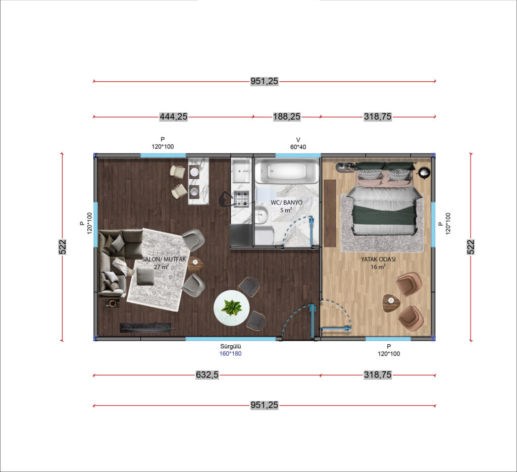 • İzolasyonu 100 mm Polistirenden oluşmaktadır.